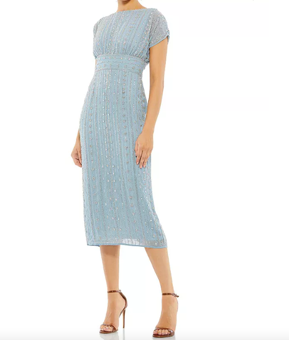 Look for brands known for event dressing with sleeve options (illusion, lace, flutter, capelet). Nordstrom, Macy’s, Dillard’s, and David’s Bridal are all good options. I often feature sleeve-friendly designs from Alex Evenings—use code Deborah15 for 15% off!