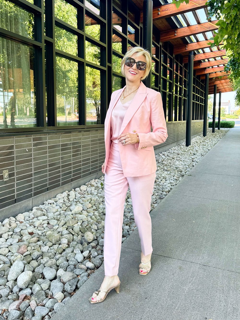 Color has the power to make you appear taller or shorter. Wearing different colors divides your body, making you appear shorter and wider. I like to dress in a single-color family from head to toe to appear taller instantly. For example, an ivory top with ivory pants and ivory shoes will keep you looking long and lean. Are you worried that using only one color might look too bland? Be sure to mix up the same color pieces in different textures to keep things interesting.