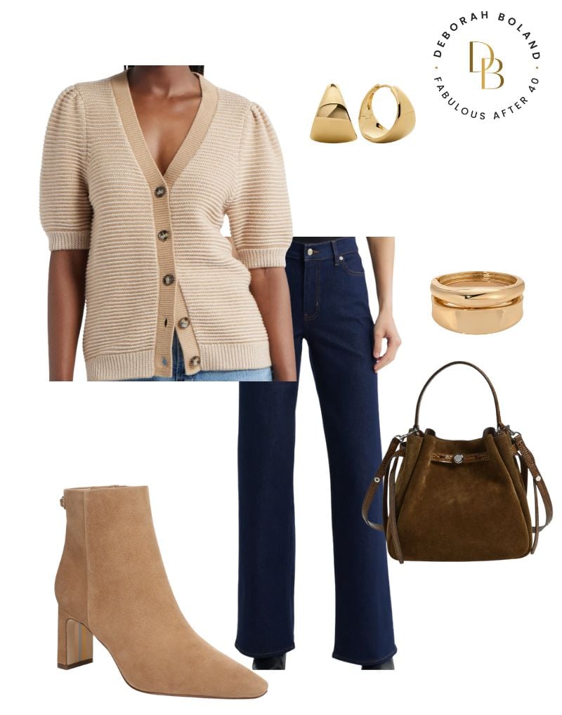 cardigan | jeans | boots | bag | earrings |bracelets