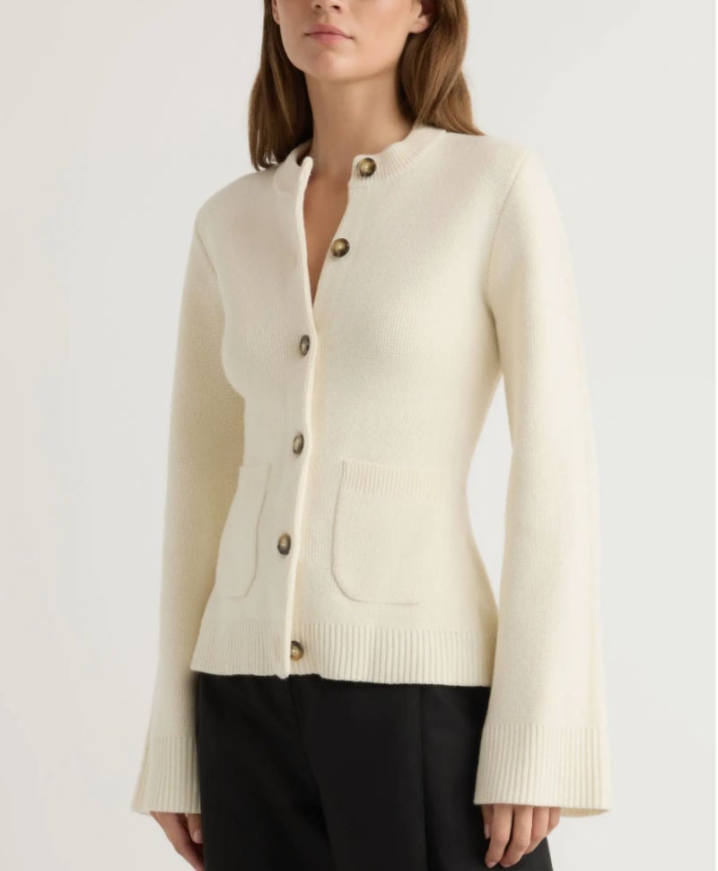 If you grew up with a mom or grandmother who lived in cardigans, you probably remember them as prim little sweaters—buttoned all the way up and more “school librarian” than stylish. Sweet, but not exactly chic.