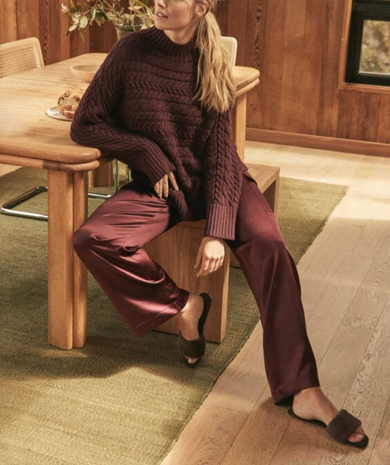 - Flowy Cargos: For a more glamorous, effortlessly elegant look, go for stain and sateen cargo with a sateen shirt or a chunky sweater. Luxurious, relaxed cargo pants that are almost like PJs are trending.