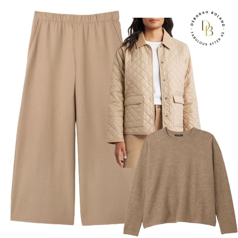 jersey wide leg pants | felted wool crewneck | quilted jacket