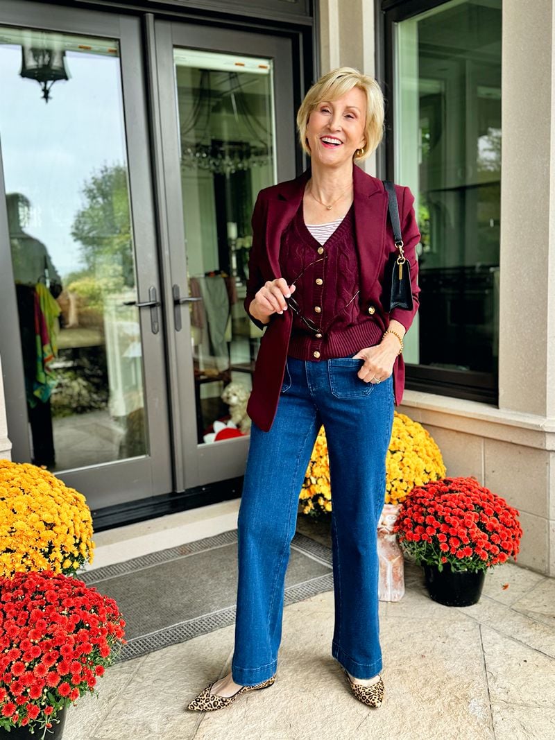 If the invite says “casual,” don’t interpret that as “sloppy.” Instead, think elevated basics. Tailored ankle pants with a patterned blouse, or straight-leg jeans with a pretty top and statement necklace. A little structure in your outfit goes a long way toward looking current and pulled together.