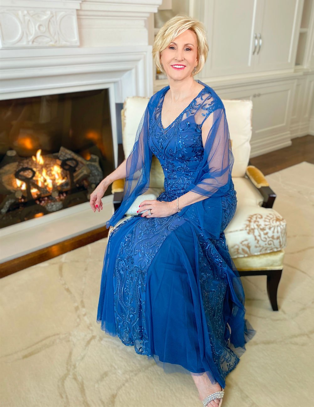 If you are the Mother of the Bride and don’t know what to wear, consider mixed separates or a dressy pantsuit. This pretty silver cowl neck top is relaxed and fun. The wide-leg chiffon pants are flowy and easygoing, and make it easy to move around and also dance!