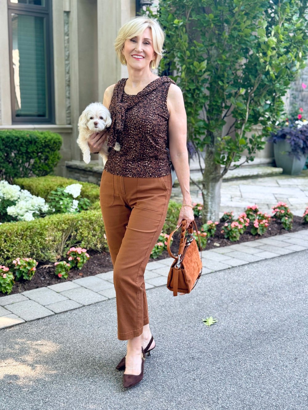 If I’m not wearing black accessories, I’m probably reaching for brown or tan! These warm neutrals bring a grounded feel to lighter shades and pair great with fall, spring, and summer colors.