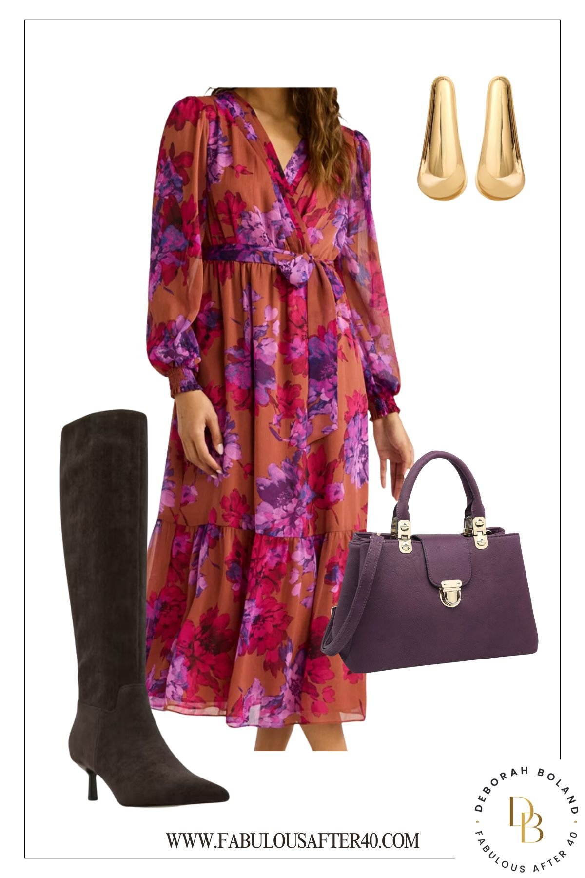 Yes, this really is from Walmart! Walmart Fashion has really stepped up their game with this moody, romantic floral print midi dress with feminine tie waist and flouncy tiered skirt. Rust, purple and pink are a modern, creative color combo that will turns heads.