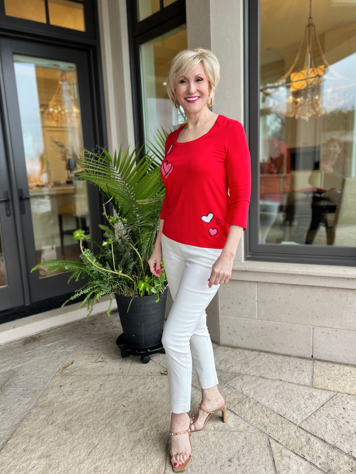 Will you be wearing hearts this Valentine’s Day? I’d love to see your take on this hearts look. Post a photo in the Fabulous After 40 Dressing Room, and show us how you’re celebrating. Join our friendly group here.